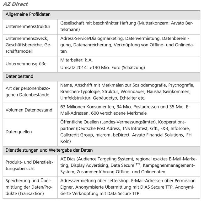 „Metadaten“ zur AZ Direct (aus o. g. Studie; alternativ hier als Bild):