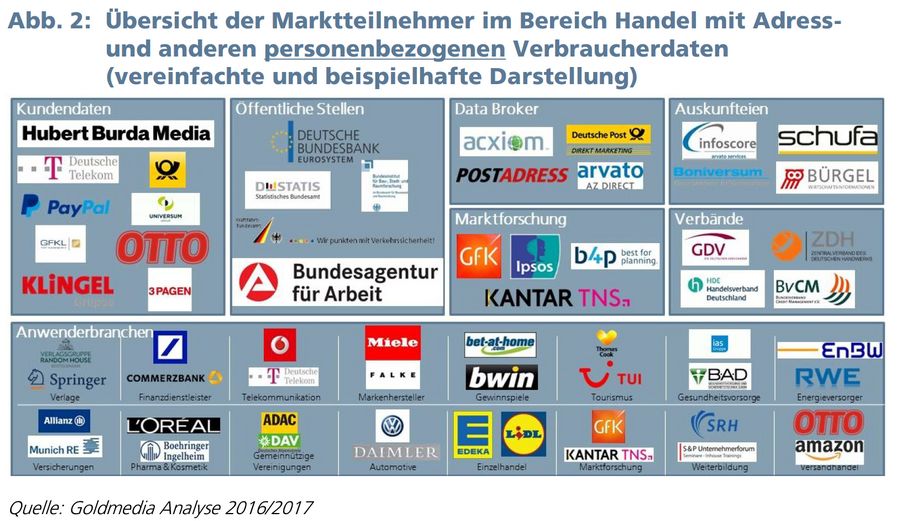 Im Weiteren – vor allem im „Kapitel“ Datenhandel in Deutschland – stammt vieles aus nachstehender Studie, welche im Auftrag des Bundesministeriums der Justiz und für Verbraucherschutz erstellt wurde (Stand: 25. April 2017)
