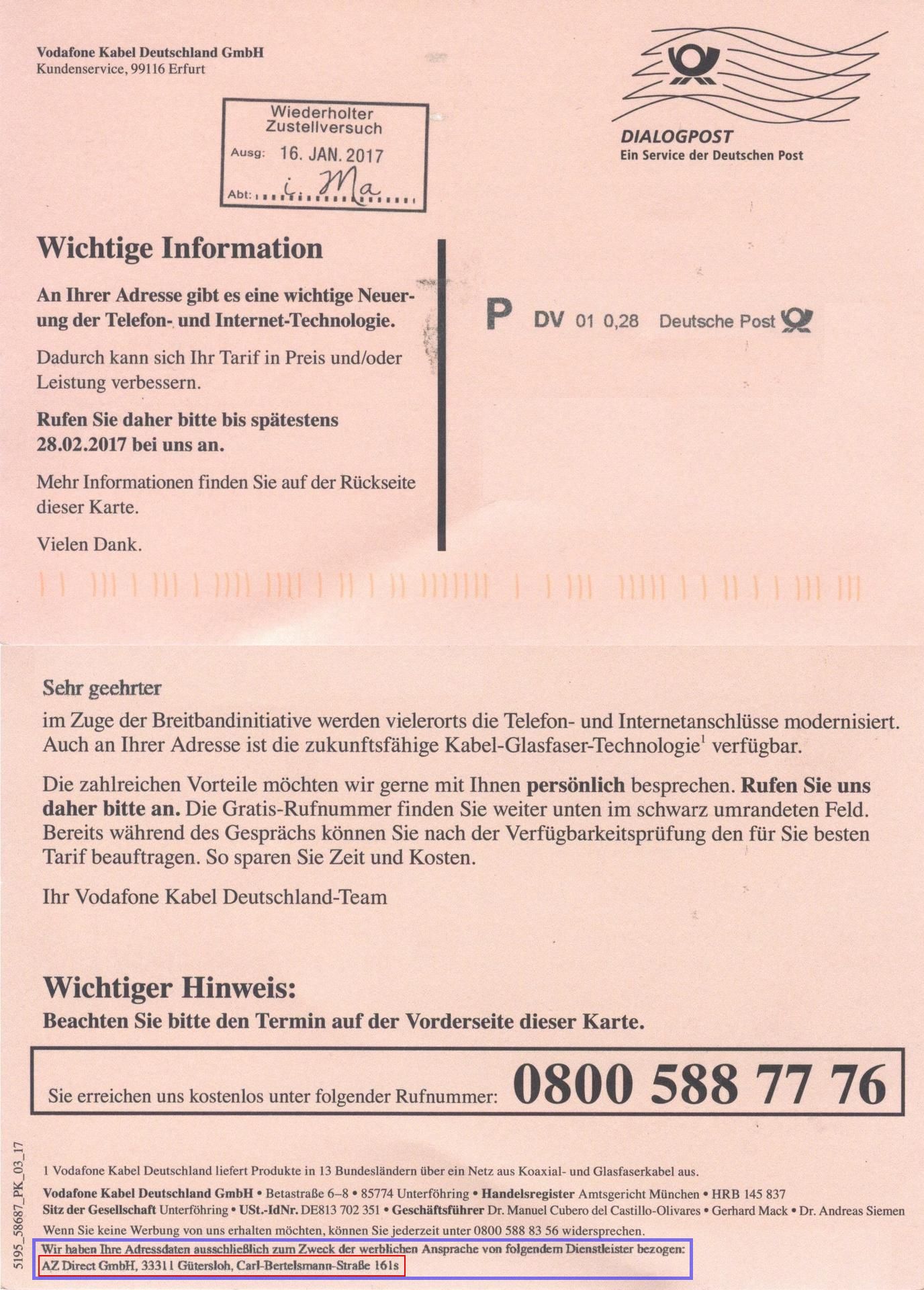 Letztes Jahr war mehrfach „Dialogpost“ von Vodafone in meinem Briefkasten; Dialogpost, die sehr speziell aufgemacht war.